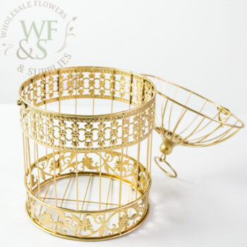 Features: 13" Gold Birdcage Clasp allows to style open or closed Approximate overall height:13.5" Approximate width 7.5" Gold paint on metal Also available in white Set of 2 or 17" Gold Birdcage available! Ideal for baby showers, quinceaneras' and weddings!