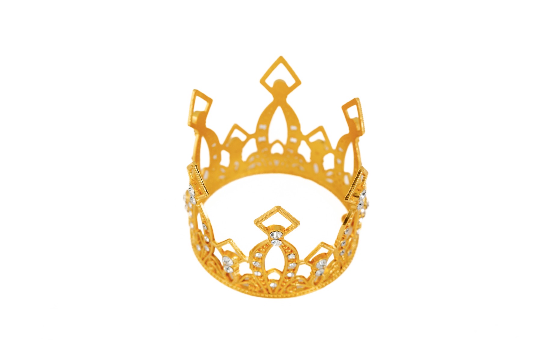 Gold metal crown Crystal rhinestones 2 metal anchor holes 2 5/8th approximate width 2 2/8th approximate height Ideal for bouquet toppers Also available in silver!